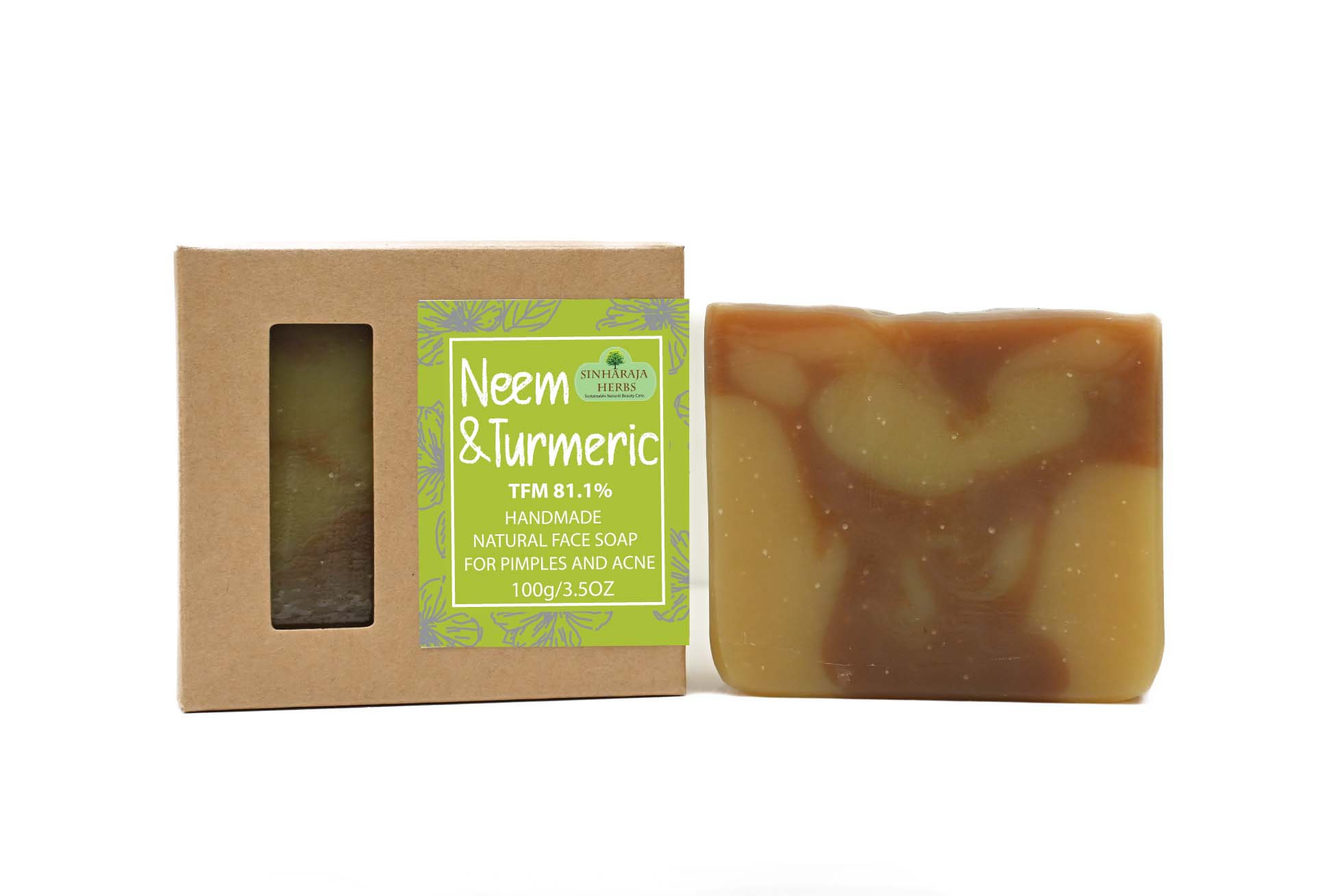 This wonderfully Pimple Treatment bar is made from Neem Leaf and Turmeric extract. Handcrafted to fight acne, pimples, whitehead and blackheads, this Pimple Soap cleanses, soothes and nourishes your skin.The natural glycerine produced by this cold process method of soap making is retained in the soap which leaves your skin feeling soft.. The essential oil Rosemary adds a nice aroma to the experience. This is a pure natural product made and packed by hand.. A natural Pimple Treatment soap for Oily and Pimple skin types.
